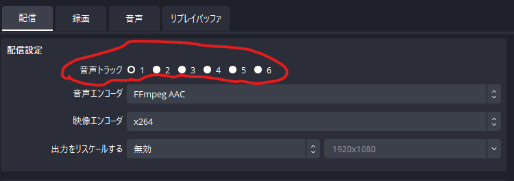 まずは先ほどの設定>>出力から今度は配信のタブを開いてください