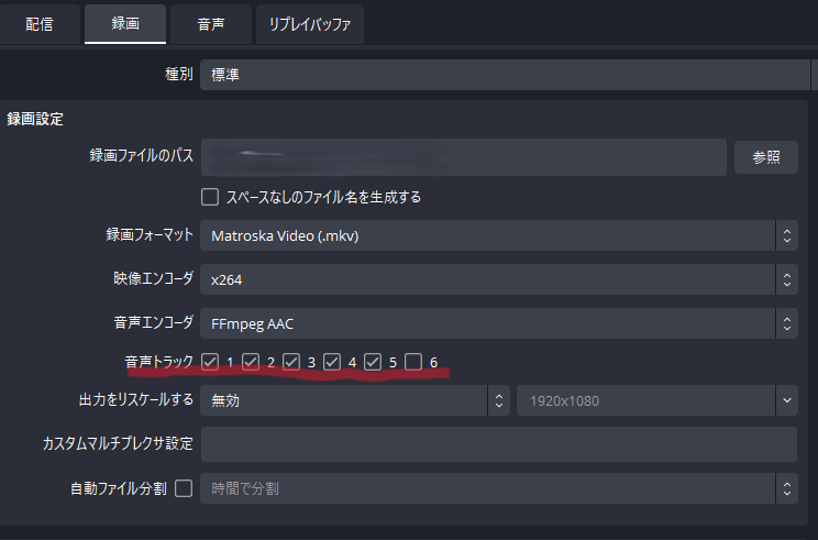 まずマルチでとるためには.mkvにする必要があります